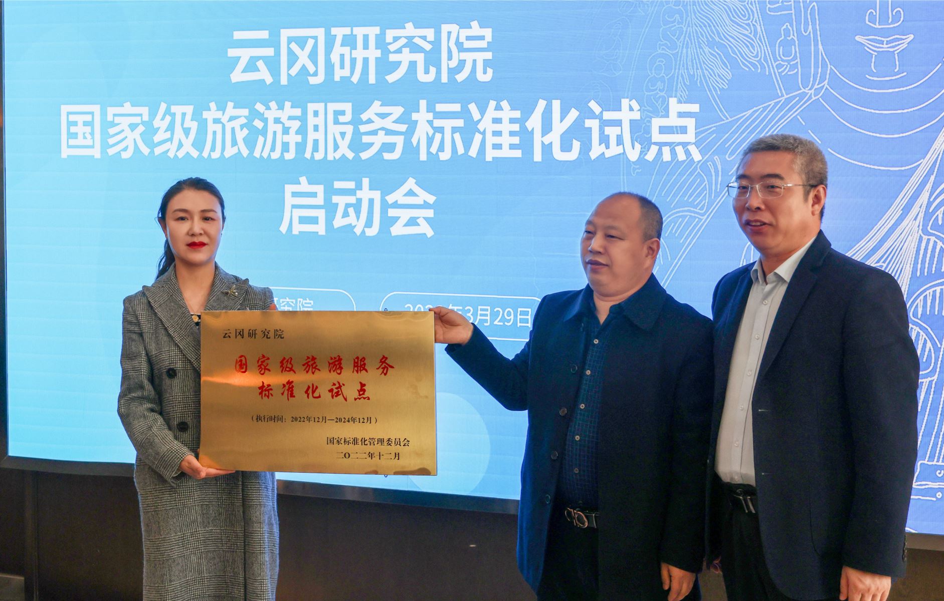 最后,安建貴、常煒共同為云岡研究院國家級旅游服務(wù)標(biāo)準(zhǔn)化試點授牌。