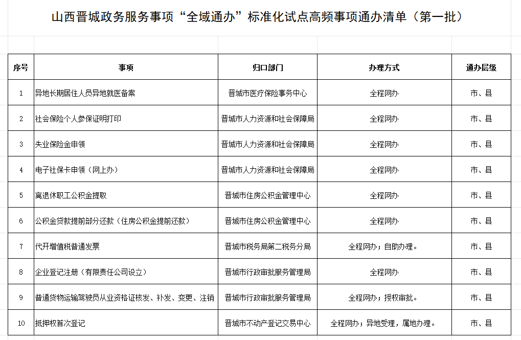 晉城市公布第一批“全域通辦”事項(xiàng)清單