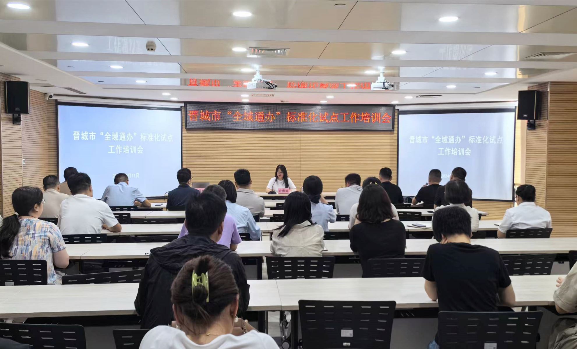 2024年7月11日,晉城政務(wù)服務(wù)事項(xiàng)“全域通辦”標(biāo)準(zhǔn)化試點(diǎn)工作培訓(xùn)會(huì)議召開。晉城市政務(wù)服務(wù)中心主任白彬利、副主任王飛,市政務(wù)服務(wù)中心各入駐單位及各縣(市、區(qū))行政審批服務(wù)管理局負(fù)責(zé)政務(wù)服務(wù)標(biāo)準(zhǔn)化和政務(wù)服務(wù)事項(xiàng)“全域通辦”工作的分管領(lǐng)導(dǎo)及具體負(fù)責(zé)人參加會(huì)議。會(huì)議邀請(qǐng)山西省標(biāo)準(zhǔn)計(jì)量技術(shù)研究院高級(jí)工程師??〖t進(jìn)行專題培訓(xùn),白彬利作開場致辭。
