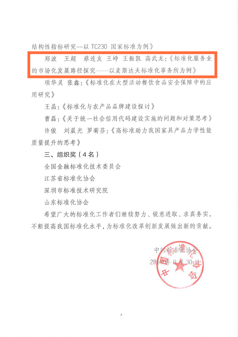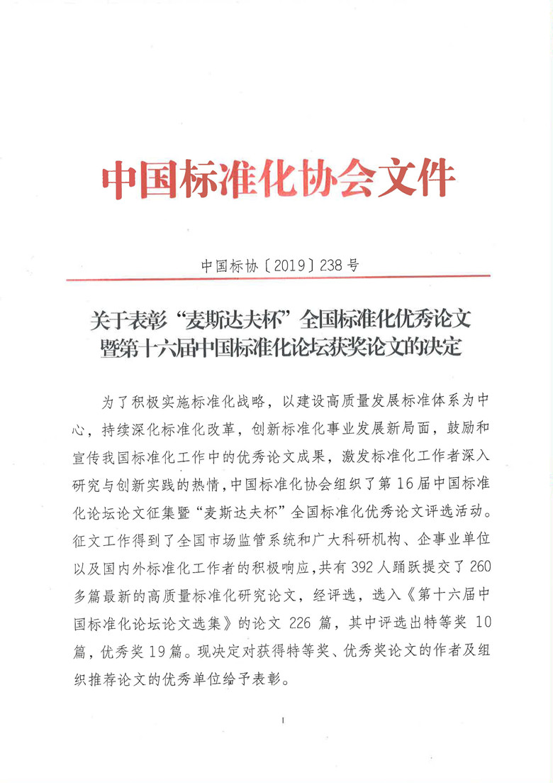 我所論文《標(biāo)準(zhǔn)化服務(wù)業(yè)的市場化發(fā)展路徑研究》獲第十六屆中國標(biāo)準(zhǔn)化論壇優(yōu)秀獎