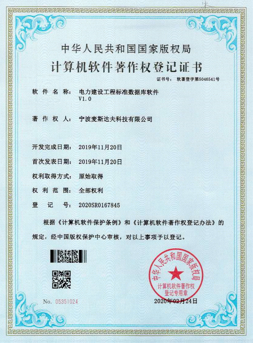 麥斯達(dá)夫標(biāo)準(zhǔn)化事務(wù)所在收到以上這項(xiàng)軟件著作權(quán)授權(quán)后,已累計(jì)獲得32項(xiàng)軟件著作權(quán)。