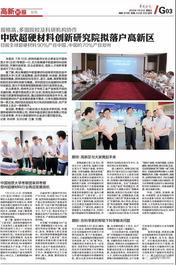 《鄭州晚報(bào)·高新時(shí)報(bào)》版面Show|中歐超硬材料創(chuàng)新研究院擬落戶高新