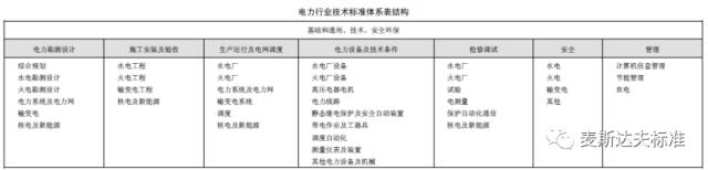 電力行業(yè)技術(shù)標(biāo)準(zhǔn)體系表結(jié)構(gòu):