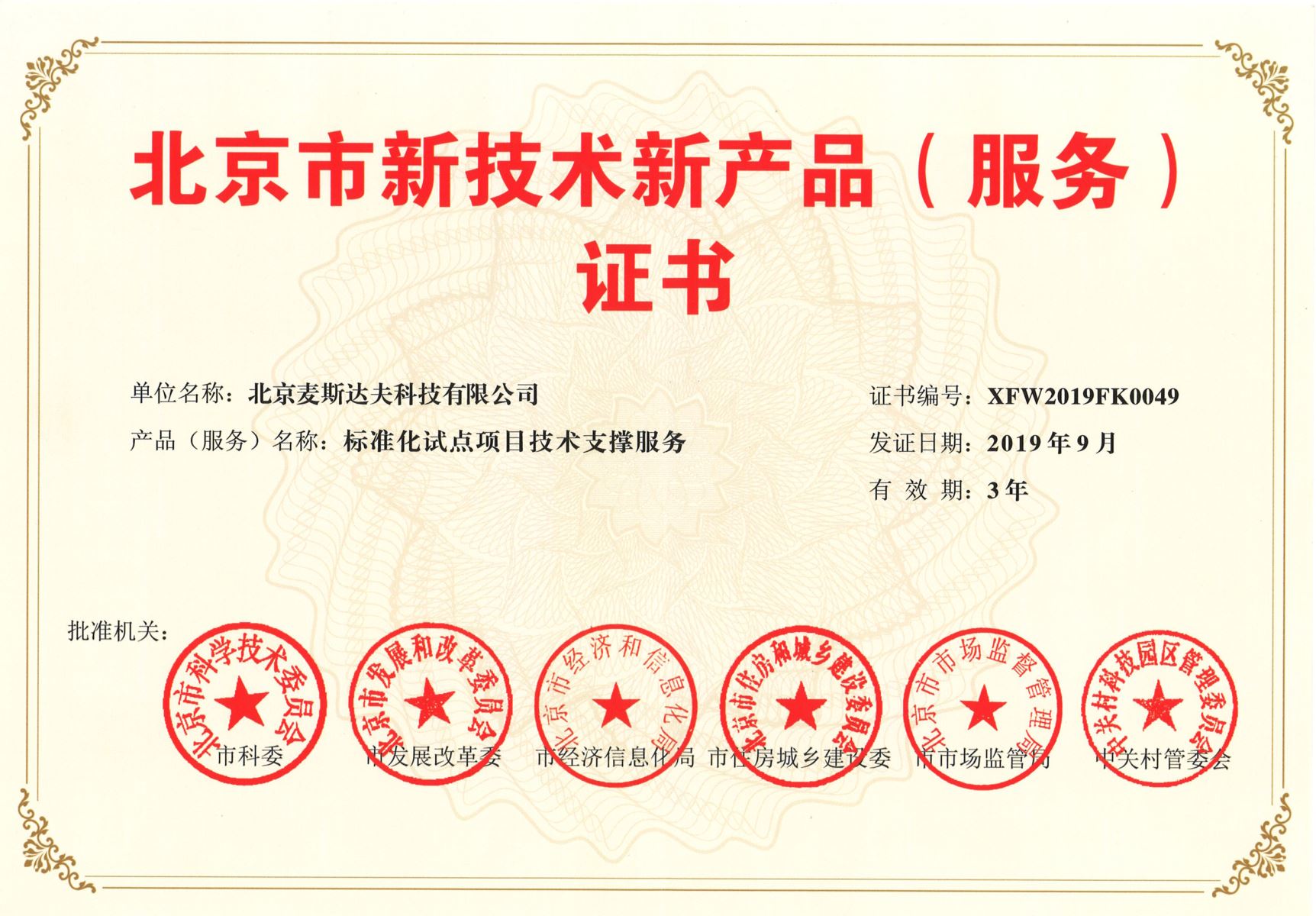 麥斯達夫標準化事務所申報的“標準化試點項目技術支撐服務”成功入選第十批北京市新技術新產(chǎn)品(服務)。
