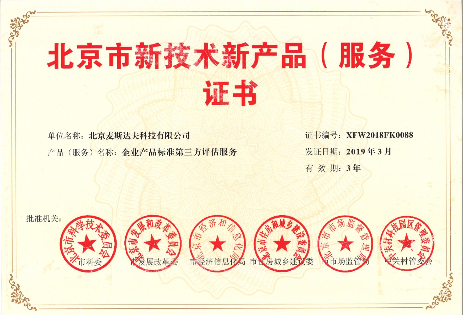 麥斯達夫標準化事務所申報的"企業(yè)產(chǎn)品標準第三方評估服務"成功入選第九批北京市新技術新產(chǎn)品(服務)。