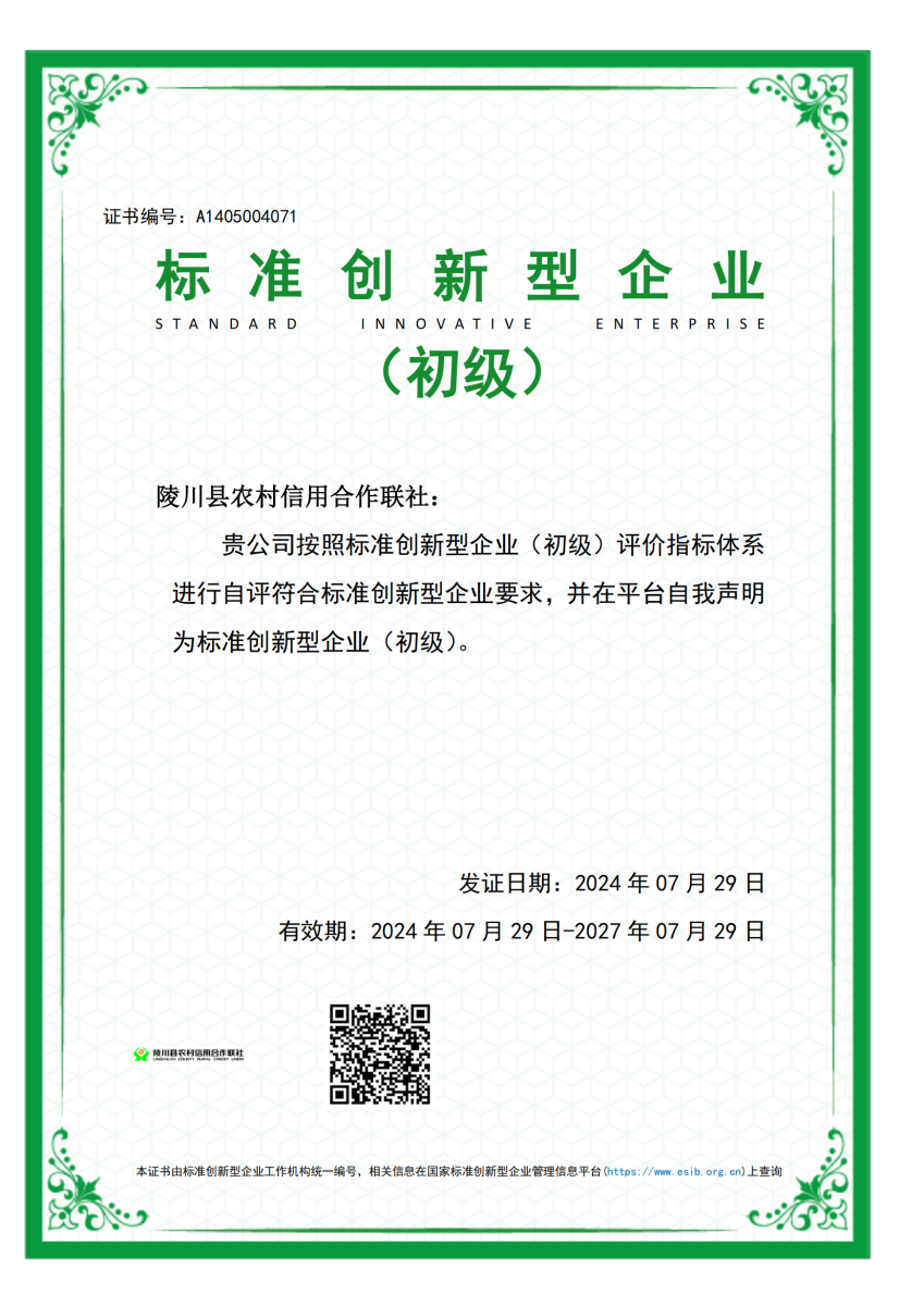 陵川縣農(nóng)村信用合作聯(lián)社獲評標(biāo)準(zhǔn)創(chuàng)新型企業(yè)