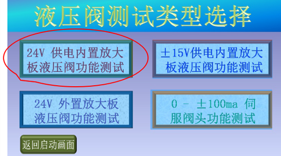 4、點(diǎn)擊“24V供電內(nèi)置放大板液壓閥功能測試”,進(jìn)入?yún)?shù)設(shè)定畫面;