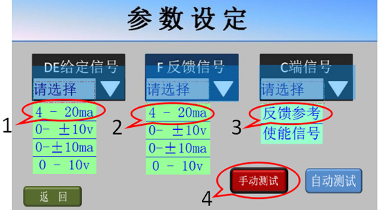 7、手動(dòng)測試基本正常后,點(diǎn)擊屏幕左下方的返回鍵,返回參數(shù)設(shè)定畫面;