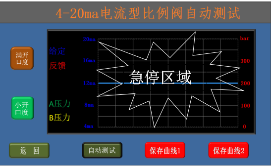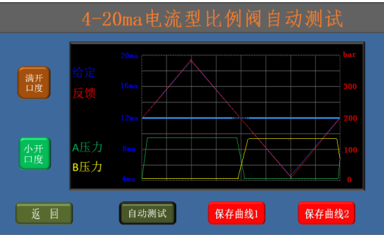 * 選擇小開口度后點(diǎn)擊“自動(dòng)測試”可使比例閥從0開口度逐漸增加到+20%開口度,再逐漸減少到-20%,然后逐漸增加到0開口度;